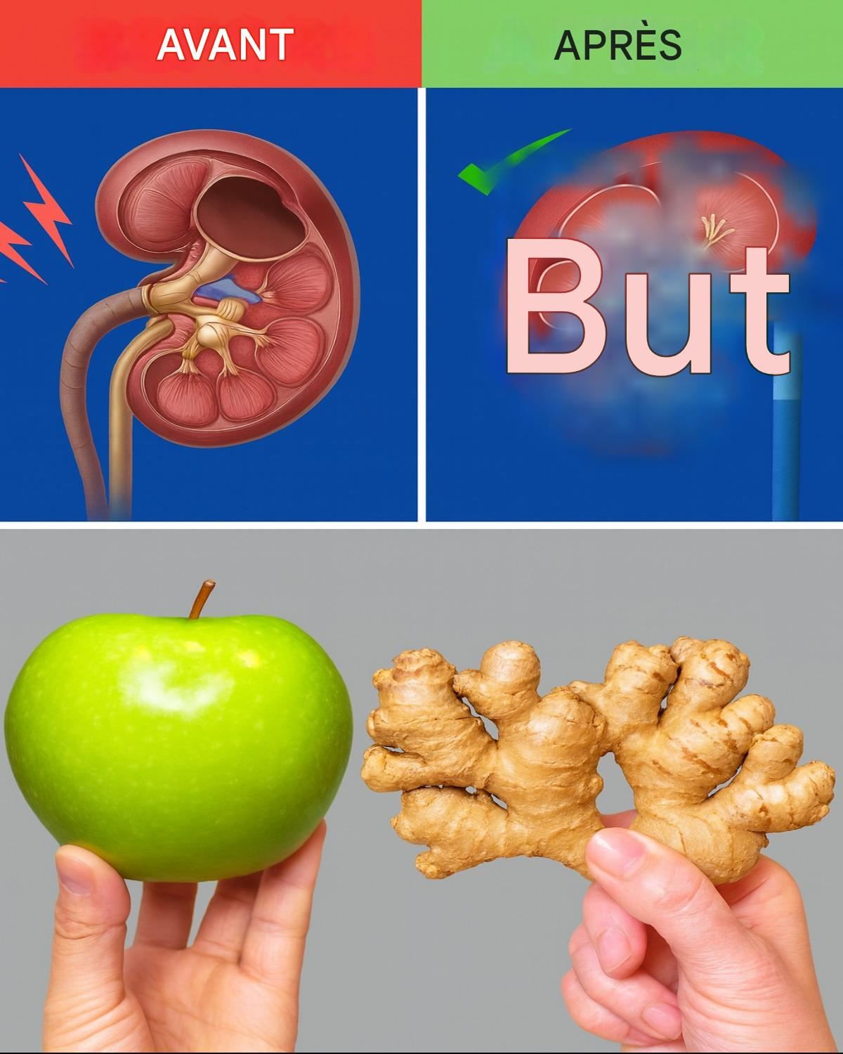 Les reins travaillent discrètement en coulisses, filtrant près de 200 litres de sang chaque jour pour éliminer les déchets et maintenir l’équilibre hydrique. Pourtant, beaucoup de gens négligent leur santé rénale jusqu’à ce que des problèmes surviennent. Selon la National Kidney Foundation, plus d’un adulte sur sept aux États-Unis souffre d’insuffisance rénale chronique, souvent sans le savoir. Et si un remède simple et naturel pouvait soutenir vos reins avant que les problèmes ne s’aggravent ? C’est là que les pommes et le gingembre entrent en jeu. Tous deux sont utilisés depuis longtemps en médecine traditionnelle et sont soutenus par la science nutritionnelle moderne. Combinés, les pommes et le gingembre créent un nettoyage naturel des reins qui non seulement favorise la détoxification, mais peut également améliorer le bien-être général. Dans cet article, vous découvrirez le fonctionnement de ce remède, comment le préparer et les résultats avant-après souvent rapportés.